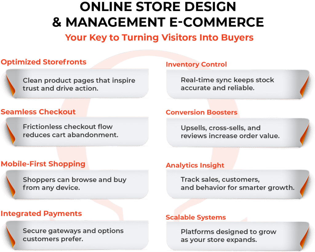 We work with platforms like Shopify and WooCommerce, or fully custom frameworks when needed—always ensuring flexibility, performance, and security. Every store we develop is built with mobile shoppers in mind, integrated with secure payment gateways, and structured for long-term growth.