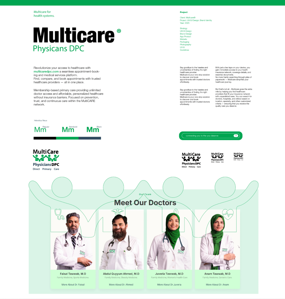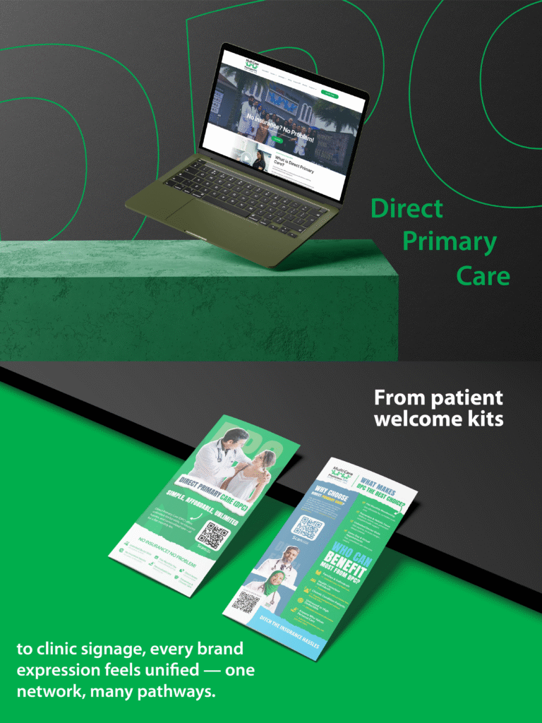 A unified brand system built for three connected services Physicians, DPC, and Wellness all under one trusted family name.